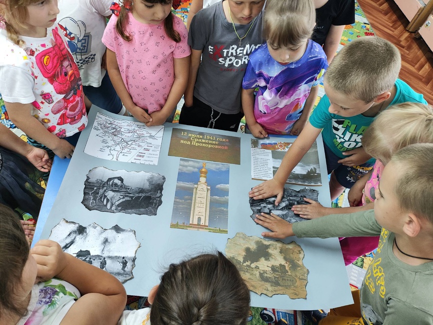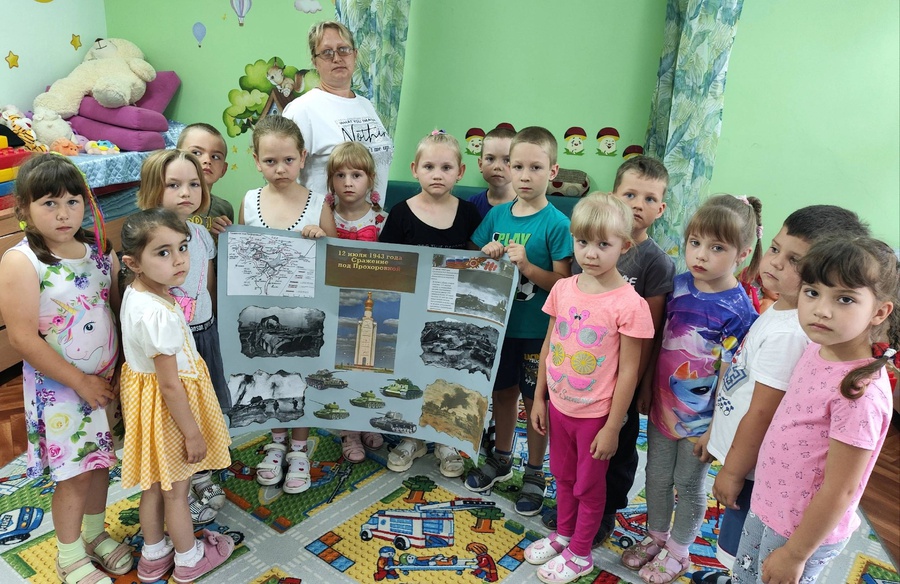 Воспитанники старшего дошкольного возраста под руководством воспитателей Штраух О. А., Коптевой М. Е. и Дурнеску Т.В. создали патриотическую газету « Мы помним Ваш подвиг!» , а также поучаствовали в виртуальной экскурсии «Великая Отечественная война на художественных полотнах» и в познавательной беседе «Танковое сражение на Курской дуге», где ребята обогатили свои знания об исторических событиях под Прохоровкой и Курской дугой времен ВОВ.