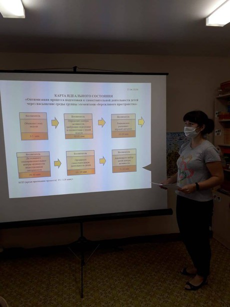 14.07.2020 года на базе «опорной» площадки МБДОУ «Детский сад с.Терновка» с соблюдением мер предосторожности по предупреждению новой коронавирусной инфекции COVID-19 состоялась защита бережливых проектов по направлениям «Создание игрового пространства и руководство детской игрой» и «Насыщение среды группы элементами «бережливого пространства»».
