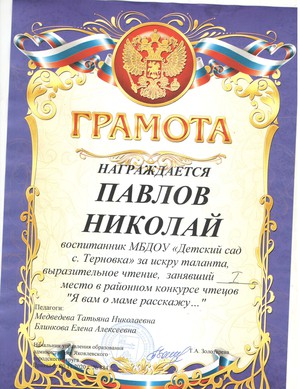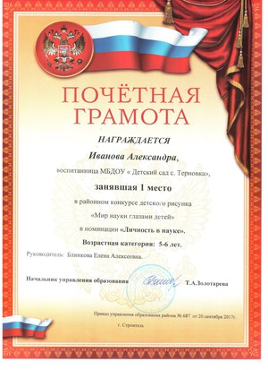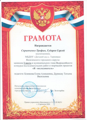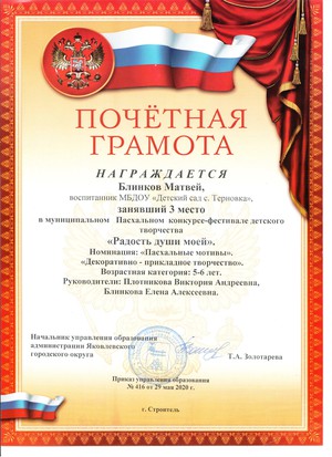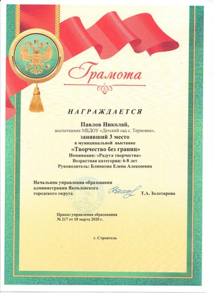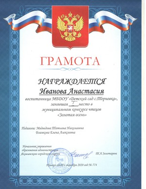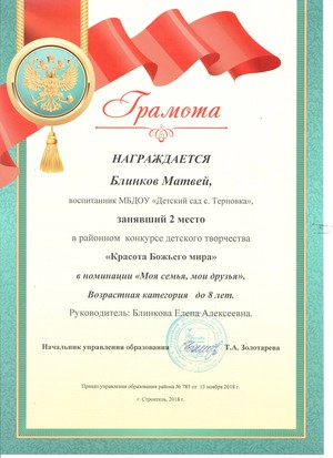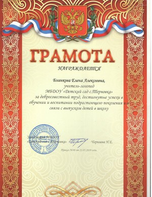 Награждена грамотой заведующего ДОО в 2019 году