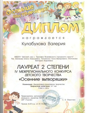 -2019 год. Статья «Портфолио дошкольника с речевыми нарушениями как инновационная технология самопознания личности через мотивацию достижения успеха»- статья в сборнике материалов II региональной заочной научно-практической конференции «Инновации в образовательной деятельности: региональный аспект» (г. Белгород, 20 мая 2019 года) -610 с. Режим доступа: http://new.beliro.ru/wp-content/uploads/2019/06/innovacii-v-obrazovat-dejat_20-maja-2019.pdf;