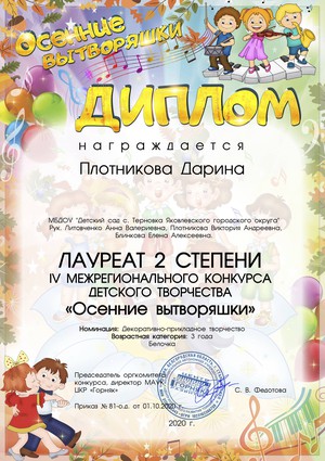 Квалификационная категория: не имеет. Предстоящий срок аттестации на первую квалификационную категорию – февраль 2021 года.